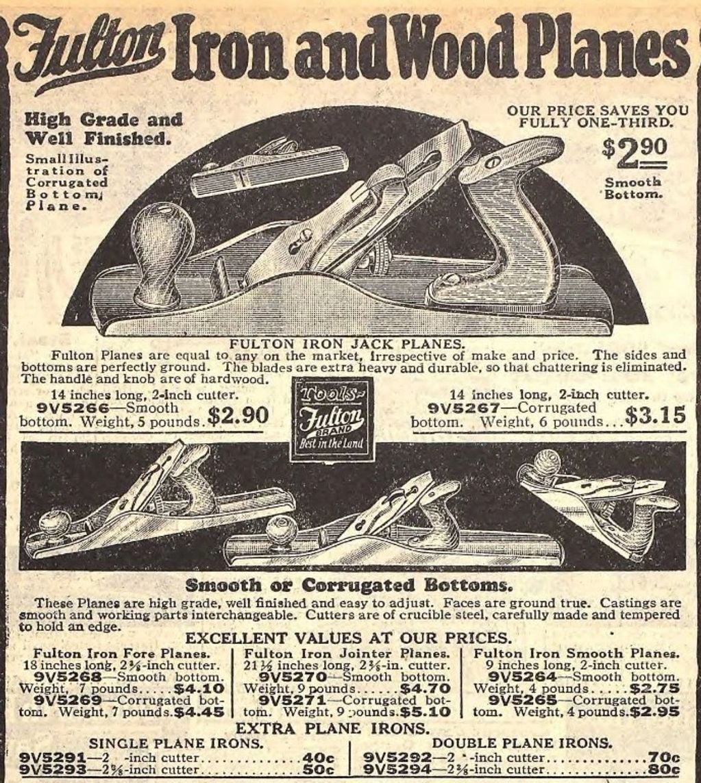 Here it is, 1925 Fulton model 5271 corrugated iron jointer plane. $5.10. Converted for inflation to 2020 dollars, that's $74.06. A bargain still today.